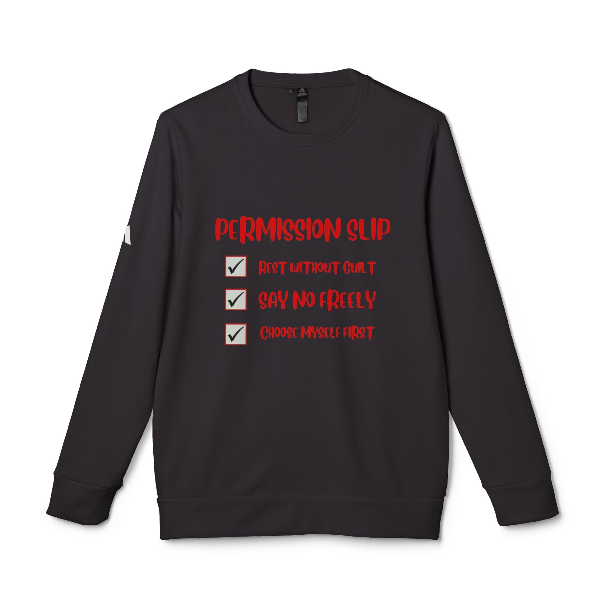 Give yourself the permission you deserve with the "Permission Slip-Long Sleeve Sweatshirt". Designed on a premium Adidas sweatshirt. This cozy and stylish shirt features a bold statement. The front showcases "Permission Slip" and three empowering, checked boxes: